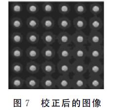 式中(xi,yi)為燈點(diǎn)區(qū)域的重心坐標(biāo),也就是相對應(yīng)LED燈點(diǎn)的中心位置坐標(biāo);燈點(diǎn)區(qū)域的大小為M×N,M、N分別為燈點(diǎn)區(qū)域?qū)挾群透叨确较蛏系南袼貍€數(shù);(xmn,ymn)為燈點(diǎn)區(qū)域內(nèi)圖像像素(m,n)的坐標(biāo),m、n分別為該圖像像素在該燈點(diǎn)區(qū)域內(nèi)所處的行和列;pmn為燈點(diǎn)區(qū)域內(nèi)該圖像像素(m,n)的二值化后的值。如圖2(c)所示,該方法能夠確定各個LED燈點(diǎn)的位置,并且由于使用了閾值分割的方法,能有效地避免燈點(diǎn)之間的相互干擾,使計算出的燈點(diǎn)的位置更加精確。